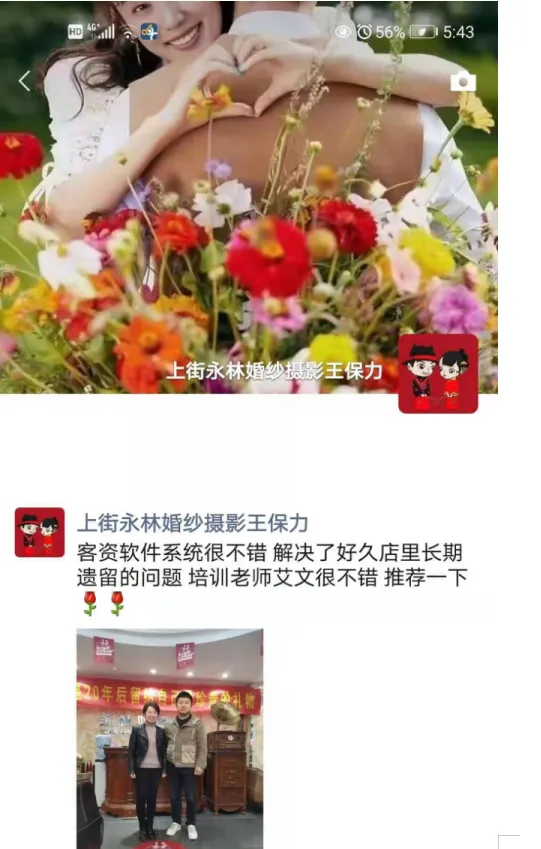 感谢王总选择智谷客资料系统,今天来到河南的省会城市郑州给郑州永林婚纱培训,开主管会的时候王总、店长璐璐,和各个主管对软件都非常的认同,特别是自动提醒、自动奖罚的功能,王总非常喜欢。