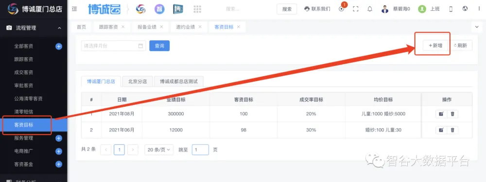 l 第一步:我们可以在智谷客资系统中新建我们的目标如下图: