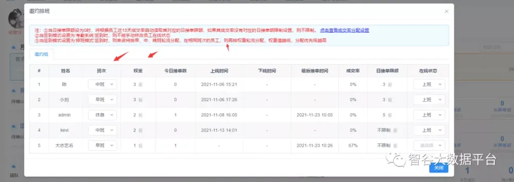 1.修改排班模式轮流分配客资算法:先按早、中、晚班,相同班次下,再按权重轮流分配客资