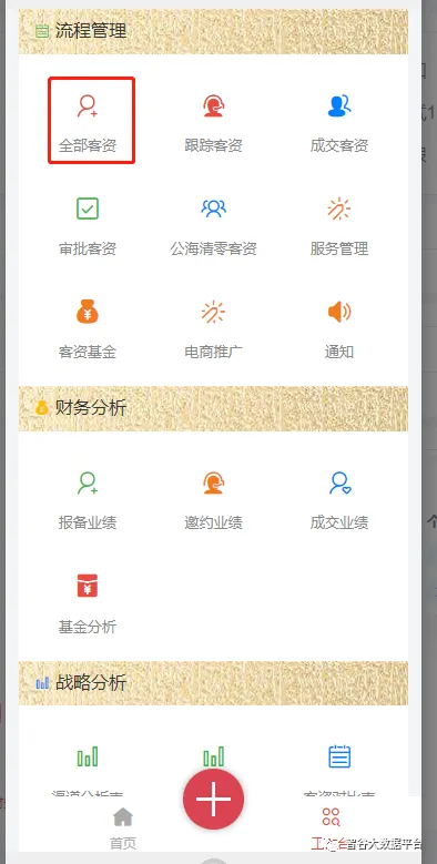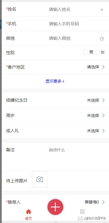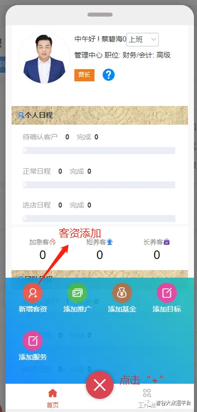 点击主页“+”号,选择“新增客资”