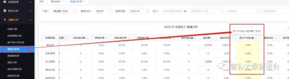 2.修改渠道分析-》投入产出比计算方式:投入产出比=成交额/支出(原投入产出比=支出/成交额)