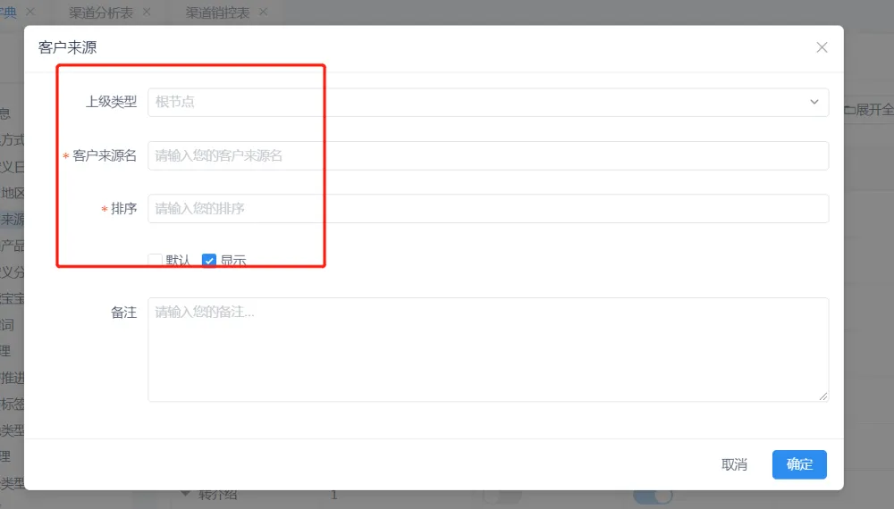 在系统设置中,我们选择通用字典设置-点击客户来源-点击右上角新增,就可以新增我们的客资渠道!