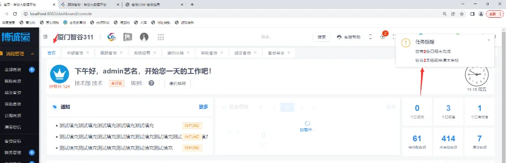 3.首页新增‘当日日程未完成’、‘延期未审核’等任务消息提醒