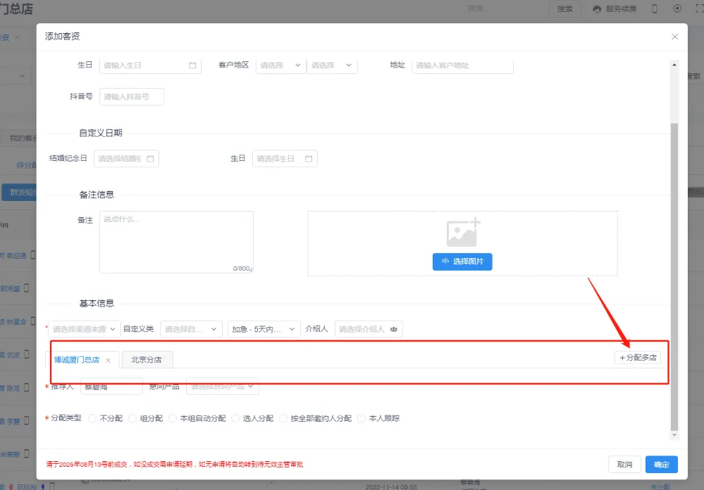 2.新增可以同时报备多个分店客资(开启独立分店客资设置情况下)