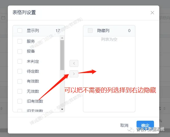 其中列表右上方的表格列设置 可让您自由组合列表中的数据列,隐藏不需要列表格。