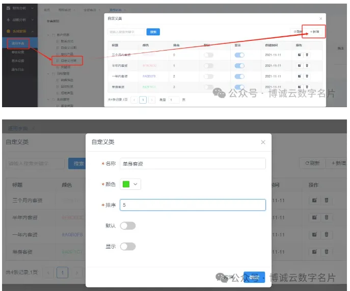系统管理---通用字典---自定义分类---新增(比如我们新增一个单身客资)