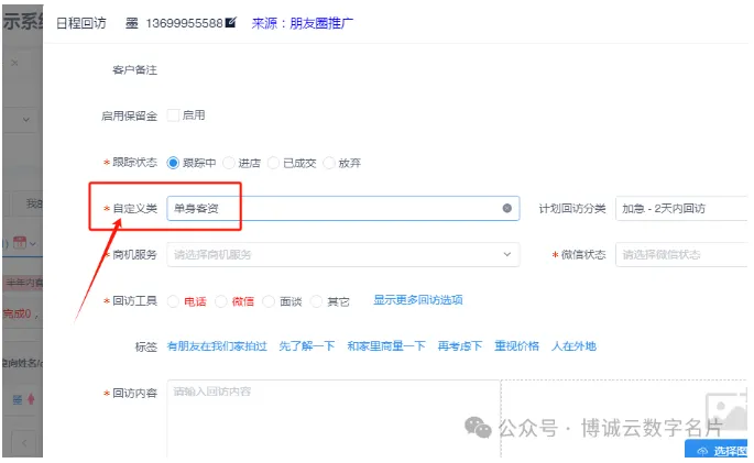 当然我们也可以在日常回访的时候,给这个客资更改自定义分类