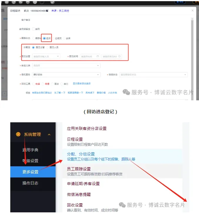 在后台开启了约见功能后,我们可在日常的跟踪回访中,给邀约好进店的客资安排好进店日期与安排好约见人员,(另:约见人员可在后台分组中先设置好)