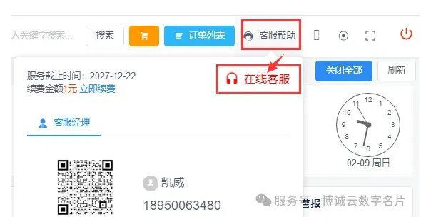此外,软件右上角的业务联系、指定客服、客服经理都可以随时为您提供软件对应的解答。同时如果您企业名下如有其他服务器安装版的博诚erp与小精灵也可通过https://www.bocheng.net 在线发起会话哦。