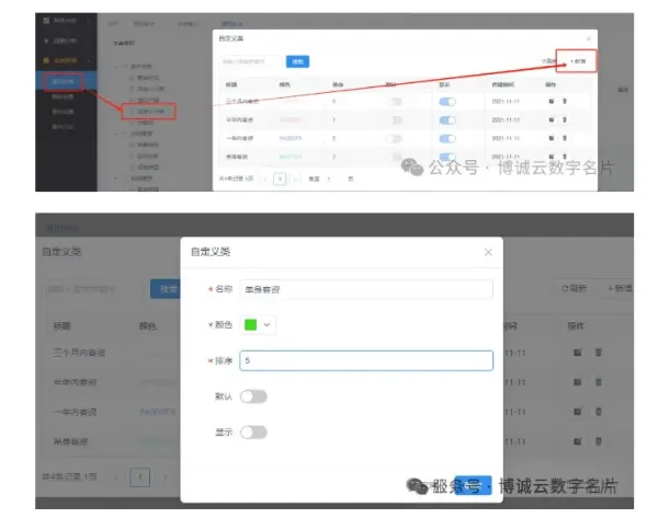 请在客资SCRM中点系统管理---通用字典---自定义分类---新增(比如我们新增一个单身客资)