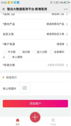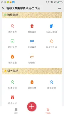 点击+号可进行快速添加(新增客资,添加推广,添加基金,添加目标)
