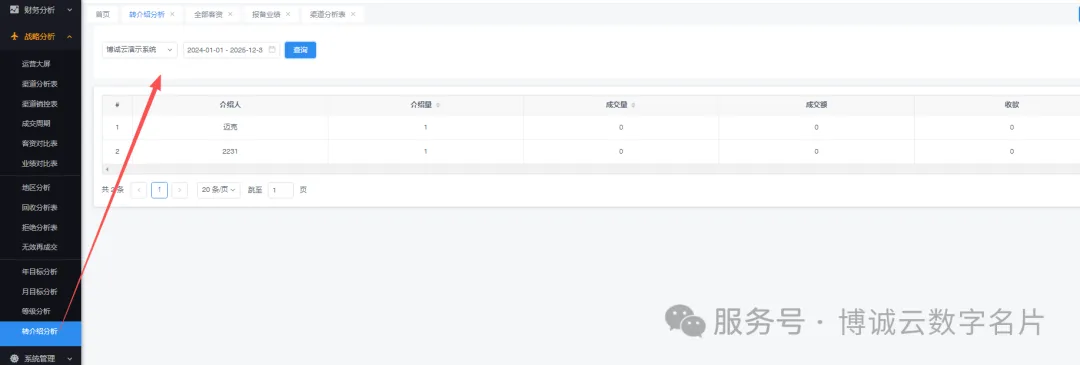 ROI(投资回报率)一目了然: 报表可以精确计算出在转介绍渠道上投入的总成本(奖励支出),与通过该渠道产生的总业绩之间的比例。这让管理者能直观地判断转介绍活动的盈利能力和效率。 •