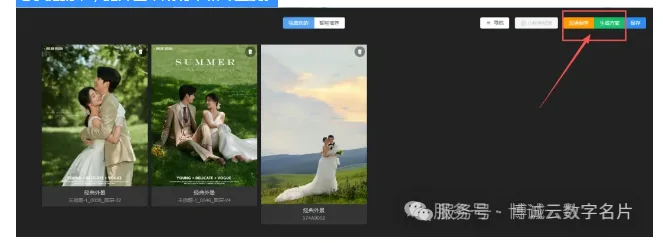 一键分享,裂变传播:销售可以方便的从小程序中分享客样片给客户,客户也可轻松将满意的作品(可加水印)分享至社群。分享链接即承载着影楼的品牌、风格与技术,极大降低了优质案例的传播门槛,带来潜在的口碑转化。