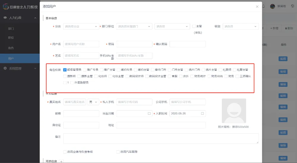 注:职位为员工职务头衔;角色为员工岗位工作职责,所有权限均由角色控制