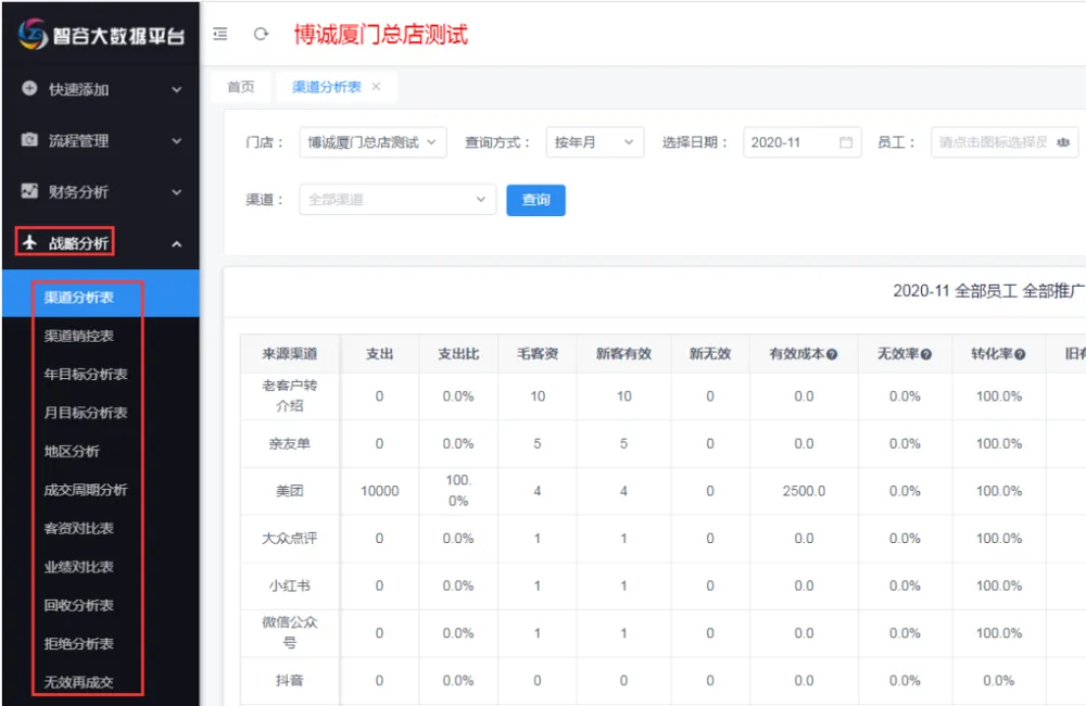 博诚旗下的客资管理系统,对我们客户的来源、渠道、成交周期等各方面为您呈现年度销售的情况,通过数据对比找出我们业绩共享较小的渠道和较大的渠道,为来年我们渠道的投放以及营销方向的制定有很大的帮助。