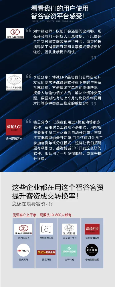 智谷客资大数据系统平台介绍、影楼客资管理\影楼转介绍、电商拓客管控分析