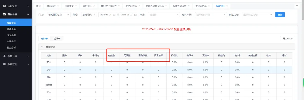 1.报备业绩新增有效数与旧有效数、无效数与旧无效数统计区分